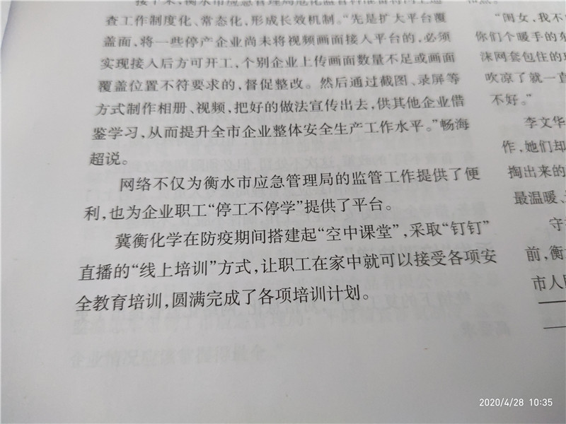 為了在嚴格落實疫情防控基礎上,全面落實公司2020年度職工安全培訓計劃,我公司通過“釘釘”管理平臺的“釘釘直播”方式,大力開展職工安全培訓,圓滿完成一季度各項培訓任務,員工安全操作技能和操作水平都有了明顯的提升,我公司職工安全培訓工作也被《河北省安全生產》等省級刊物報道。