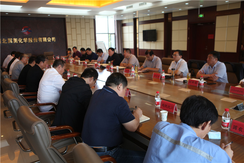 9月24日上午,衡水市高新區黨工委、管委會在我公司召開區內化工企業座談會,共11家化工企業出席了會議,會議的目的是如何進一步提高園區化工企業高質量發展水平和園區高質量管理水平,區黨工委書記、管委會主任韓連生出席會議并講話。